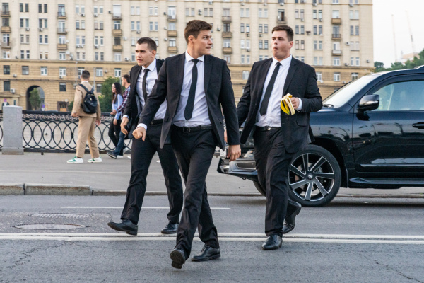 Олег Гаас: «На съемках «Телохранителей» у меня были блестящие партнеры — Сергей Маковецкий, Дмитрий Лысенков, Егор Овчинников, Саша Левин, Яна Кошкина — выпускница моего мастера Арвида Зеланда в СПбГАТИ. Работать было в удовольствие, а это главное, сразу и энергия, и силы появляются. Благодаря подготовке почти все трюки я выполнял сам, некоторые из них мы сняли с одного дубля – наш оператор Андрей Лунинский был в восторге!»