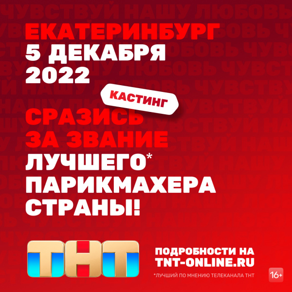 В Москве, Санкт-Петербурге и Екатеринбурге пройдут кастинги нового проекта ТНТ. Впервые в истории телеканала реалити-шоу посвящено парикмахерам! Если вы знаете про волосы все, владеете ножницами так, будто они продолжение ваших рук, знаете, что такое слайсинг, пойнтинг и муш, приходите на кастинг в новый проект и заявите о себе на всю страну! Заполняйте анкету на сайте tnt-online.ru.