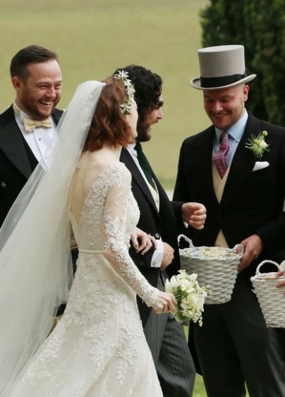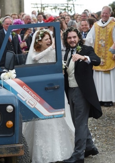 23 июня в Шотландии прошла свадебная церемония Кита Харингтона и Роуз Лесли. Актеры познакомились на съемочной площадке сериала, и отношения из рабочих плавно перетекли в романтические.
