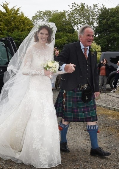 Свадьба Кита Харингтона и Роуз Лесли прошла в древнем шотландском замке, а гостями стали не только близкие и друзья, но и многочисленные коллеги по сериалу. Пока официальных фотографий со свадьбы нет, но в сети быстро распространились любительские кадры. Роуз выбрала платье цвета айвори с длинными рукавами, которое было украшено цветочными аппликациями и нежным кружевом. Образ дополнял букет из белых роз. К алтарю невесту сопровождал ее отец – Себастьян Лесли, который облачился в национальную шотландскую одежду. О помолвке пара сообщила еще в сентябре 2017 года, дав объявление в британской газете «The Times», как и положено согласно традициям.